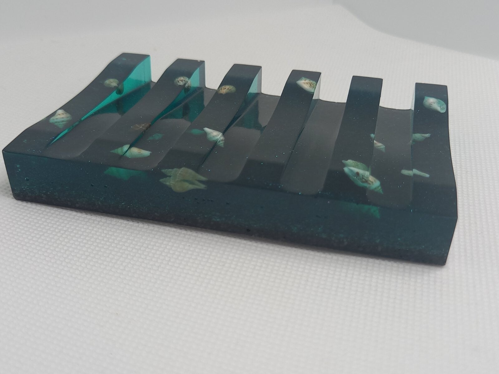 Porte-savon en résine époxy avec coquillages, 11 × 7,6 cm